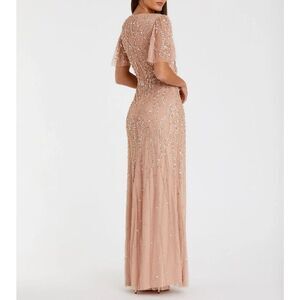 Mac Duggal Size 16 Nude Pink Embellished Flutter Sleeve Long Maxi Gown Dress