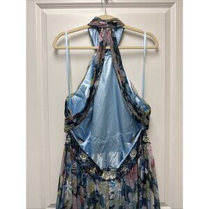 Mac Duggal Size 18 Blue Floral 68089 Halter Maxi Gown Cut Out Embellished Dress