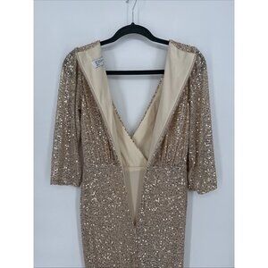 Mac Duggal Size 2 Gold SEQUINED DRAPED 3/4 SLEEVE Formal GOWN Dress New Prom