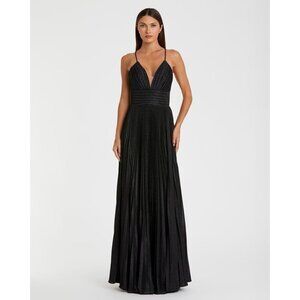 Black Shimmer Pleated V-Neck Gown