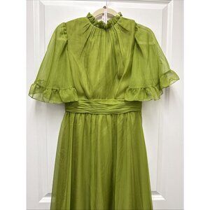 Mac Duggal Size 4 Green 68229 Ruffled Flutter Sleeve Tiered Long Gown Dress $498