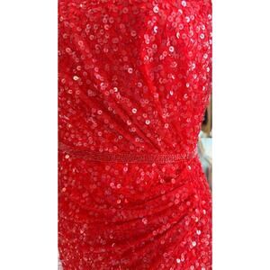 Mac Duggal Size 4 Red one shoulder full bead dress gown