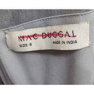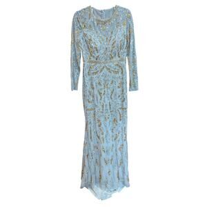 Mac Duggal Size 6 Gown Beaded Long Sleeve Dress Silver Blue with Gold Sequins