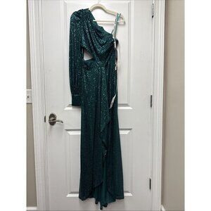 Mac Duggal Size 6 Green 26730 Sequined One Shoulder Cut Out Formal Gown Dress