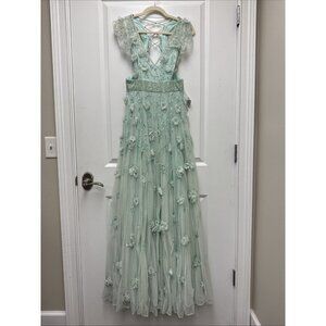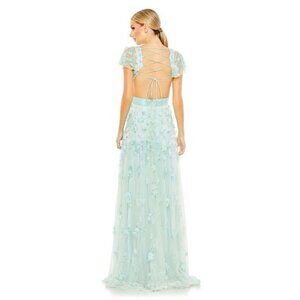 Mac Duggal Size 6 Mint Green 70275 Lace Up Back Floral Appliqué Beads Gown Dress