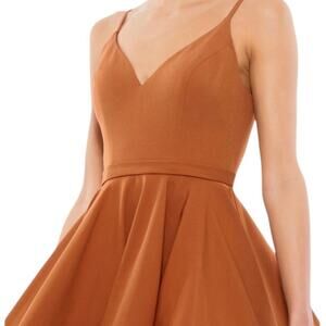 Ieena for Mac Duggal Women's Size 6 NEW Caramel Brown Low Back A-Line Party Mini Dress Style 48775