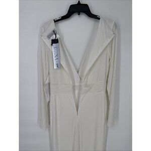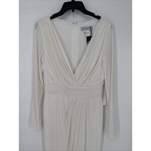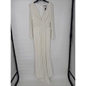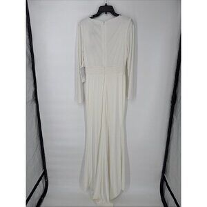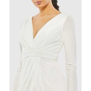 Mac Duggal Size 6 White 26554 Long Sleeve Wrap Jersey Slit Gown Dress Wedding