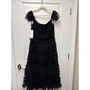 Mac Duggal Size 8 Black 8054 Ruffle Cap Sleeve Tiered Midi Cocktail Party Dress