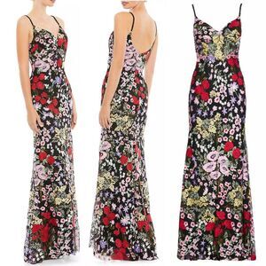 Mac Duggal Size 8 Black Floral Embroidery Sweetheart Neck Long Maxi Gown Dress