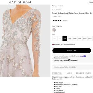 Mac Duggal Size 8 Pastel Light Purple Floral Long Sleeve A-Line Maxi Dress Gown
