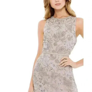 Mac Duggal Sleeveless Midi Dress 14 Embellished High Neck Lilac Beaded Formal