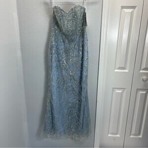 Mac Duggal Strapless Embellished Trumpet Gown Powder Blue FLAWED