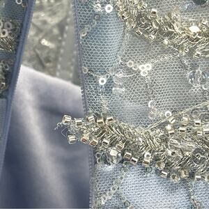 Please note due to the intricate nature of the gown, it's possible there could be a slight flaw (loose string, missing bead or sequin, etc.) After close review, I'm not finding anything major. When the dress is heavy beaded and detailed, pull the zipper up and down with caution so it doesn't snag dress.