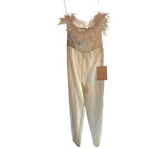 Mac Duggal Strapless Jumpsuit With Feather Trim Size 2 White Crepe Polyester Sle