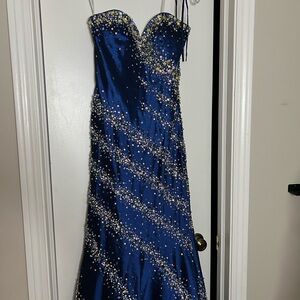 Mac Duggal Strapless Navy Gown with crystal beading size 6 pageant dress