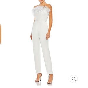 Mac Duggal Strapless Jumpsuit With Feather Trim Size 6 NWT Retail $398