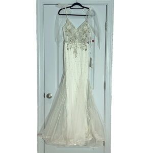 Mac Duggal Style 50666 White & Gold Embellished Mermaid Gown Women’s US 6