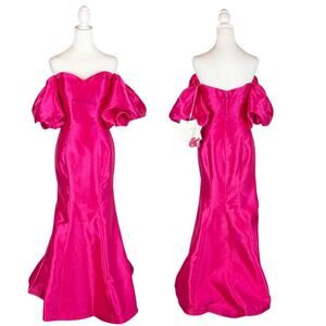 Mac Duggal Sweetheart Off The Shoulder Puff Sleeve Gown 2 PInk NWT