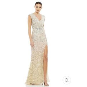 Mac Duggal Sz 8 Ombre Sequined Maxi Fishtail Evening Gown Dress Bridal Prom NWT