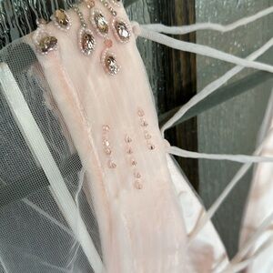 Mac Duggal TULLE SHEER LONG SLEEVE CUT OUT LACE UP A LINE GOWN size 10 New $398
