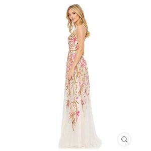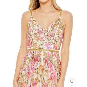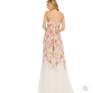 Mac Duggal V NECK FLORAL EMBELLISHED SPAGHETTI STRAP GOWN size 12 NEW $698