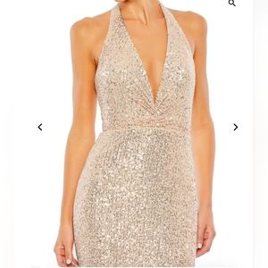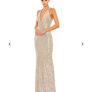Mac Duggal V-NECK SEQUIN WRAP WAIST GOWN