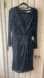 Long sleeve sequined midi dress with a faux wrap bodice, v-neckline, and draped midi-length skirt with a front slit.