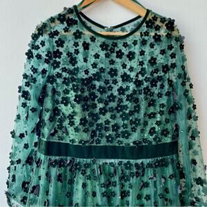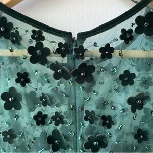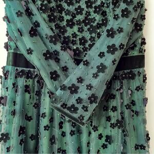 Mac Duggal : Velvet & Beaded Floral All Over w Velvet Trim A-Line Dress : Sz 14
