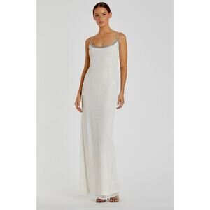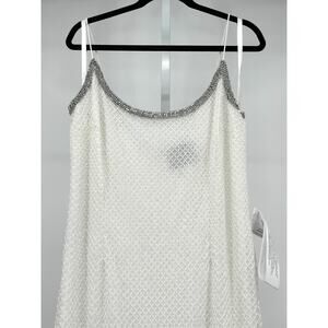 Mac Duggal White Beaded Spaghetti Strap Column Gown 14