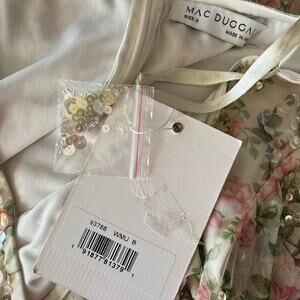 Mac Duggal White Embellished Floral Print Faux Wrap A Line Dress Women’s Sz 8
