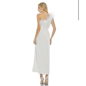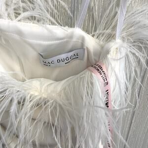 Mac Duggal White Feather Trim One Shoulder Draped Dress A68147 Size 6 NWT