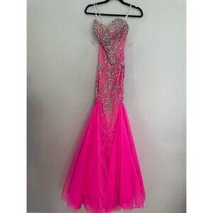 Mac Duggal Womens 0 Pink Strapless Beaded Mermaid Prom Gown Formal Dress Formal