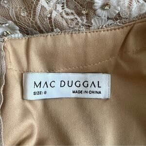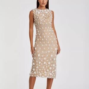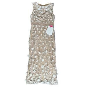 Mac Duggal Women’s Floral Applique Crew Neck Tan Sleeveless Midi Dress NWT 67853