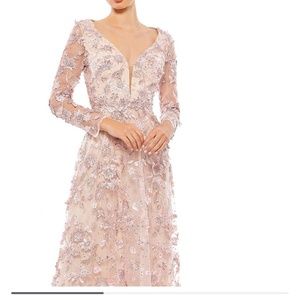 Mac Duggal Women's Floral Applique Long Sleeve Illusion Gown