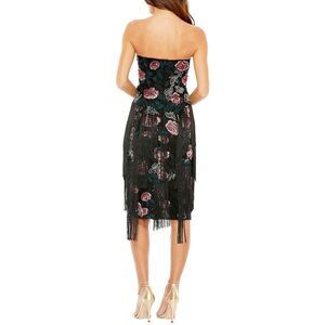 Mac Duggal Womens Floral-Embossed Fringed Strapless Midi Dress, Black