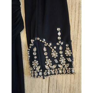 Keywords: Mac Duggal, One-Shoulder, long sleeve, gown, black, formal, elegant draping, jeweled cuffs, faux wrap, women's fashion, evening wear, size 12, long dress, party dress, new with tags.
