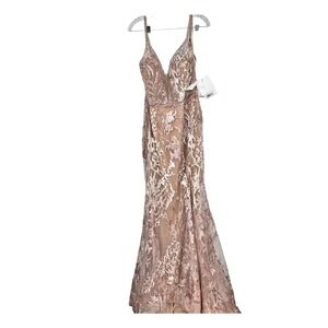 Mac Duggal Women's Plunging Neck Embroidered Gown Dress Size 14 NWT