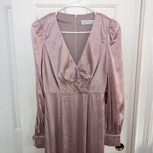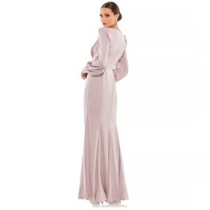Mac Duggal Womens Satin V-Neck Ruched Bishop Sleeve Gown Soft Rose Pink SZ 0