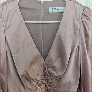 Ieena for Mac Duggal Women's Satin Ruched Bishop Sleeve Gown/ Blush Rose/ SZ 0