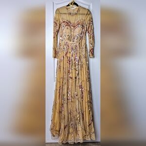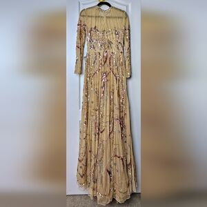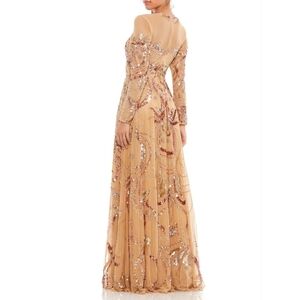 Mac Duggal Women's Stunning Long Sleeve Sequin Embellished Gown Caramel Sheer 8