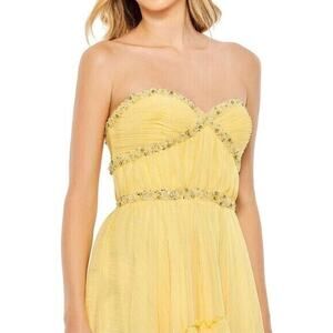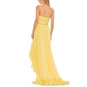 Mac Duggal Women's Yellow Beaded Ruffle Strapless Hi Low Dress Gown 14 68096 NEW