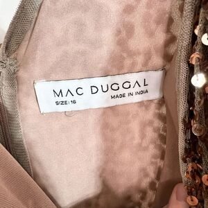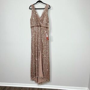 Mac Duggal Wrap Gown Womens 16 Copper V-Neck Thigh High Slit Sequin Beaded Waist