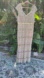 this is a pinky tan mesh fabric the sheer over both a solid sequin stripe and a scalloped floral stripe. The flowers are actual raised faceted beads that you would normally find as a jewelry. The beading in the sequins make this a fairly heavy dress, which gives it a beautiful drape This is definitely a roomie 14 dress with some stretch to it is fully lined and an excellent condition. the bust line is padded as well