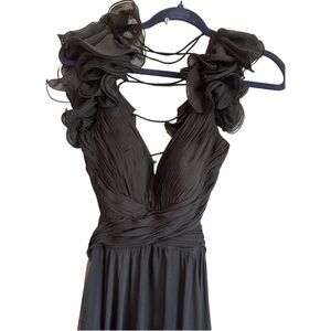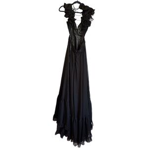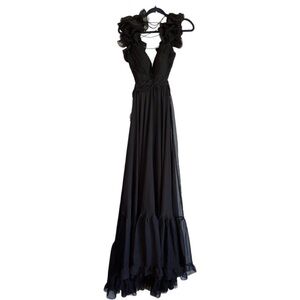 Mac Duggal leena Chiffon Ruffle Sleeve Gown in Black