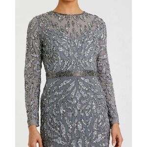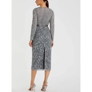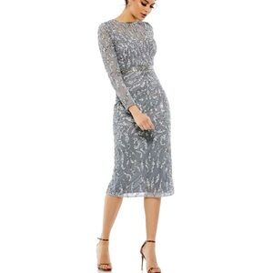 Mac Duggal platinum Embellished Illusion Sheath Sequin Midi Dress NEW