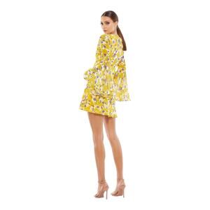 Mac Duggal yellow floral bell sleeves chiffon Mini dress party wedding Sz 10