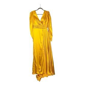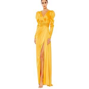 Mac Duggal 12404 Yellow Puff Sleeve Faux Wrap Formal Gown| Size 8