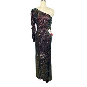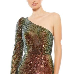 Mac Duggal 26591 Sequin One Shoulder Iridescent Gown | Size 6