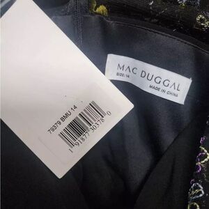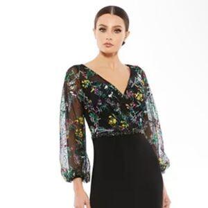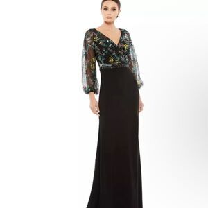 Mac Duggal EMBROIDERED ILLUSION PUFF SLEEVE COLUMN GOWN Size 14.