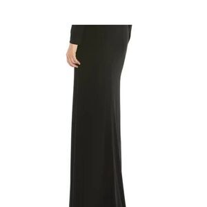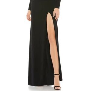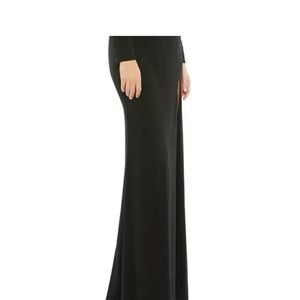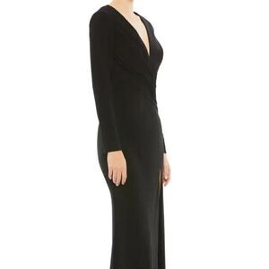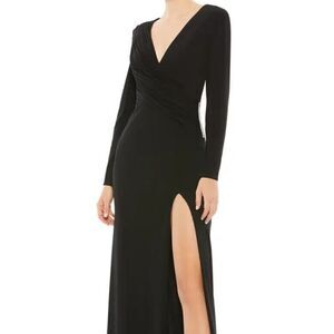 Mac Duggal Black Beaded Fringe Accent Long Sleeve Plunge Neck Gown NWT size 6